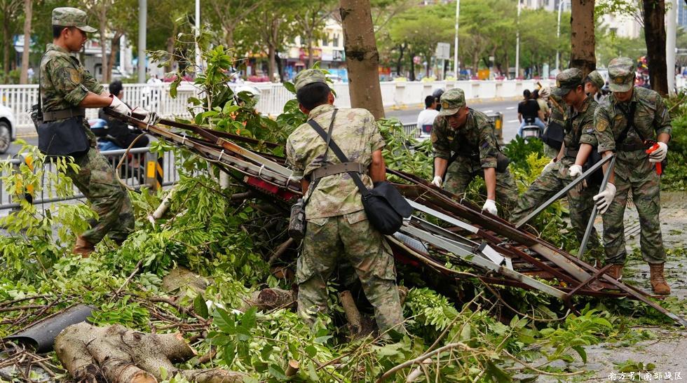 海南省军区持续出动官兵、民兵